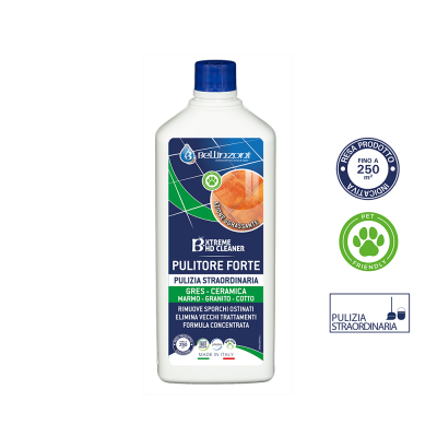 Super-concentrated cleaner with high degreasing properties for the extraordinary cleaning of all surfaces resistant to alkaline based cleaners such as: terracotta, clinker, glazed ceramic and quarry tile. Indicated for deep cleaning of stubborn dirt and grime, post installation clean ups and for the removal of previous applied treatments and waxes. Highly effective for the removal of metallic waxes. Controlled foam formula. Can also be used with automatic floor scrubbing machines.