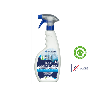 Protettivo *ingienizzante con formula 3 in uno, pulisce, protegge le cabine doccia, la rubinetteria ed elementi in acciaio, il plexiglass e la ceramica.