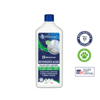 Detergente concentrato a base acida per la pulizia di fine cantiere e fine posa; pulisce le superfici da sporco inorganico, calcare, cemento, sale e solfati.