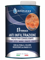 Protettivo anti-infiltrazione consolidante indicato per l'impermeabilizzazione di terrazze e balconi in gres, pietra, cotto, klinker dall’intemperie e dall’umidità.