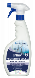 Protettivo *ingienizzante con formula 3 in uno, pulisce, protegge le cabine doccia, la rubinetteria ed elementi in acciaio, il plexiglass e la ceramica.