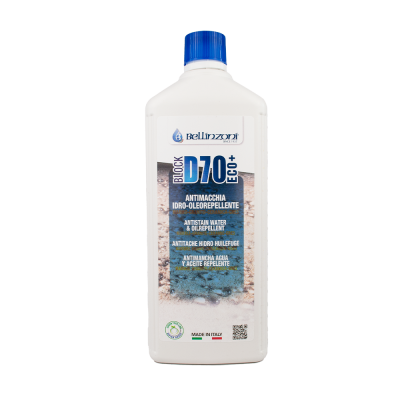 la traspirabilità, consentendo all’umidità interna di fuoriuscire ed evitando l’assorbimento dall’esterno. BLOCK D70 ECO+ riduce la formazione di muffe e funghi. Il prodotto è conforme ai requisiti US EPA 24/SCAQMD RULE 304-91. Testato secondo ISO 4892-2/ASTM G155 (resistenza ai raggi UV).