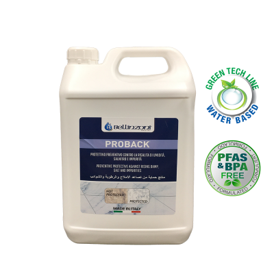 Impregnante pronto all’uso trasparente a base acqua per la protezione delle pietre dalla risalita di umidità, sali ed impurità per evitare la formazione di aloni e macchie. Il prodotto deve essere applicato sul retro e sui quattro bordi delle piastrelle. Specifico per pietre naturali, granito, marmo, agglomerati, cotto e materiali assorbenti. Eccellente per proteggere pavimenti, scale e rivestimenti. Non crea film e lascia respirare la pietra. Non contiene sostanze volatili dannose per l’ambiente. Esente da COV. Non pregiudica l’adesione della pietra